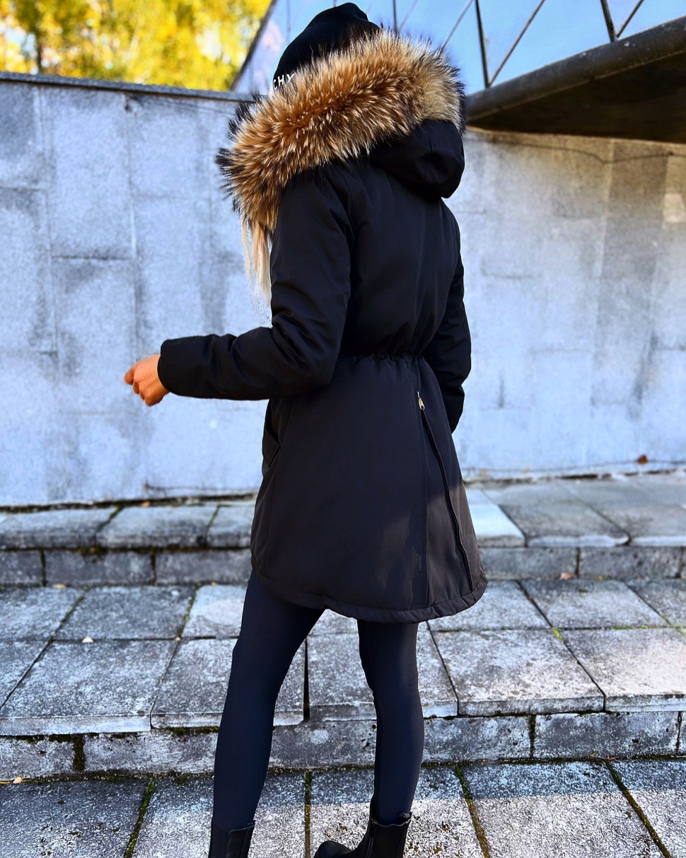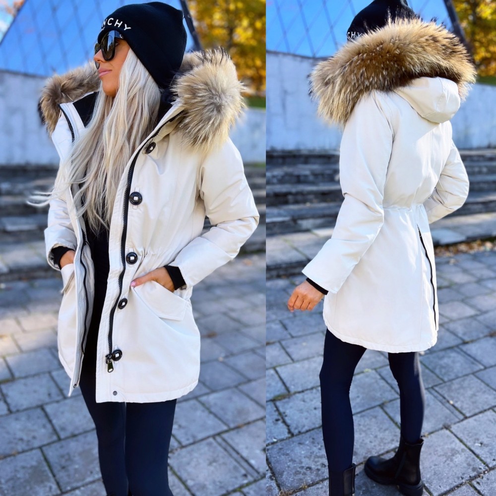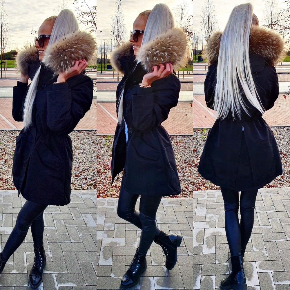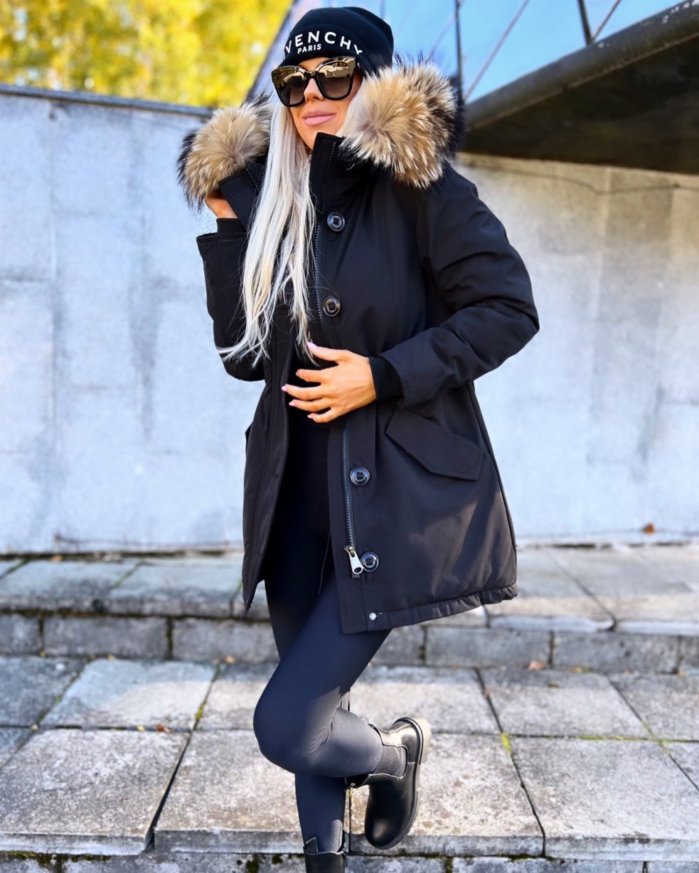 Ziemas jaka ar dabīgu kažokādu un garāku aizmugurējo daļu (L, Melns)