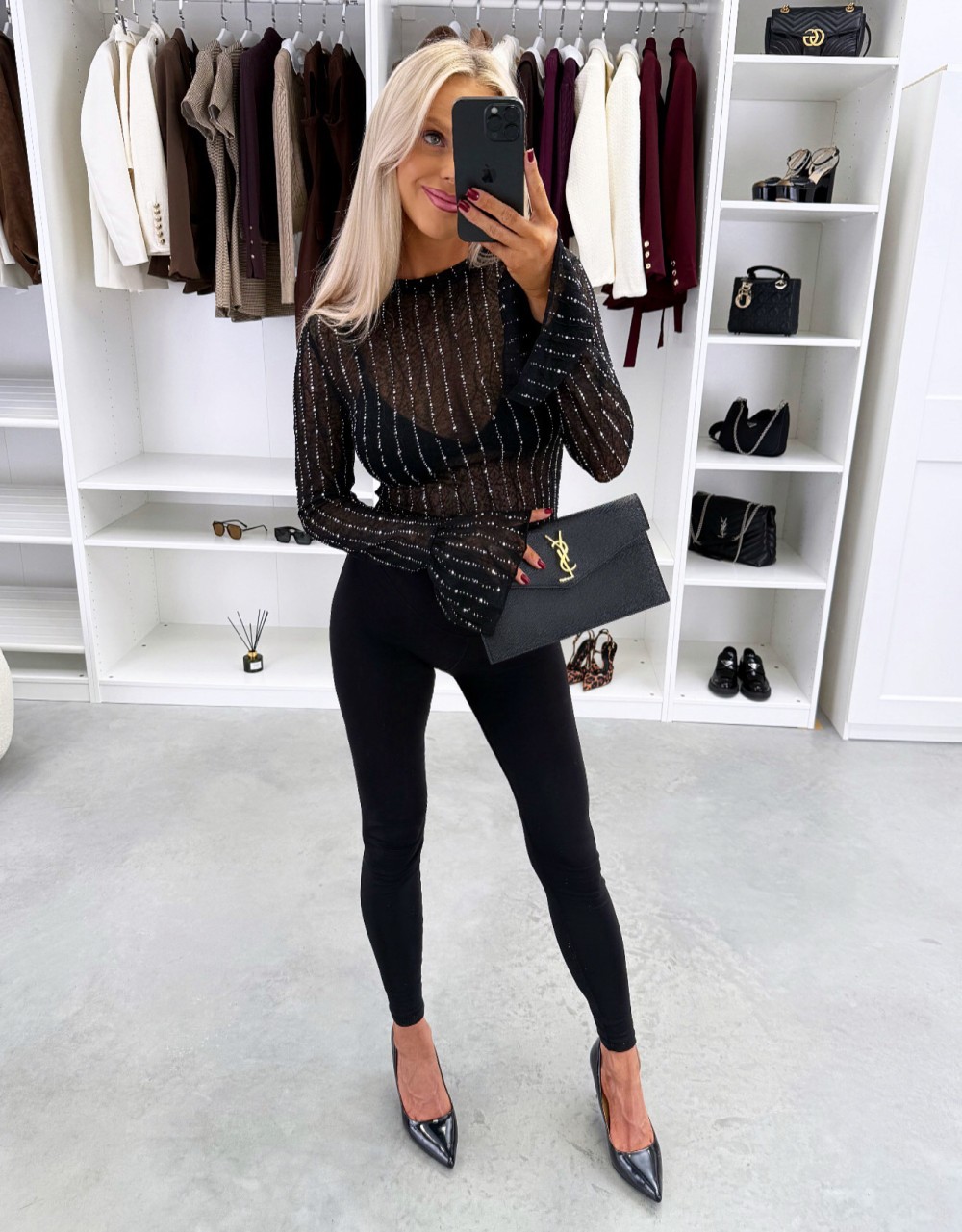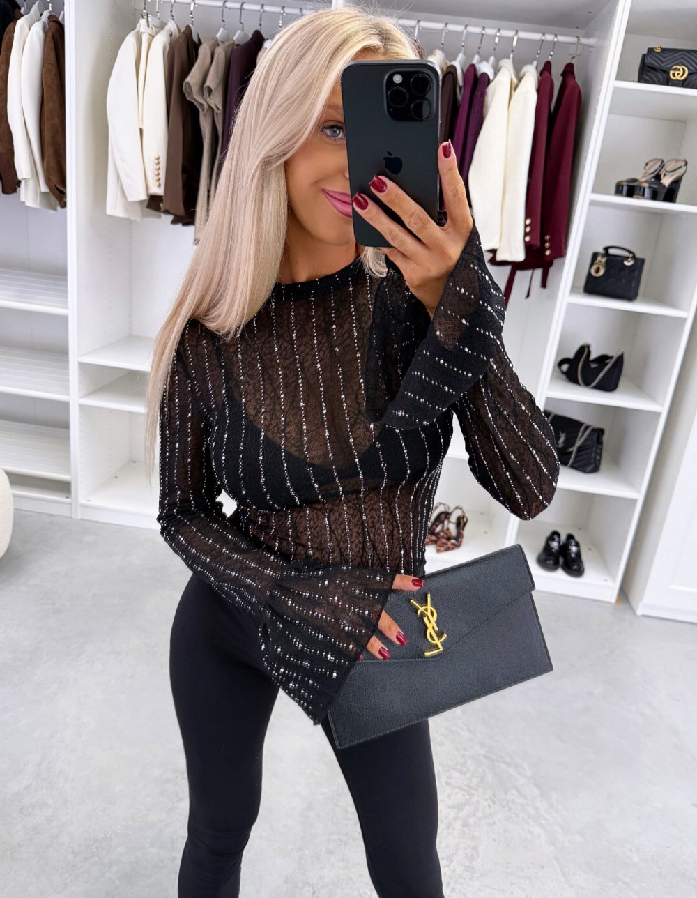 Эластичный топ с блестящими стразами (Черный, XS/S)