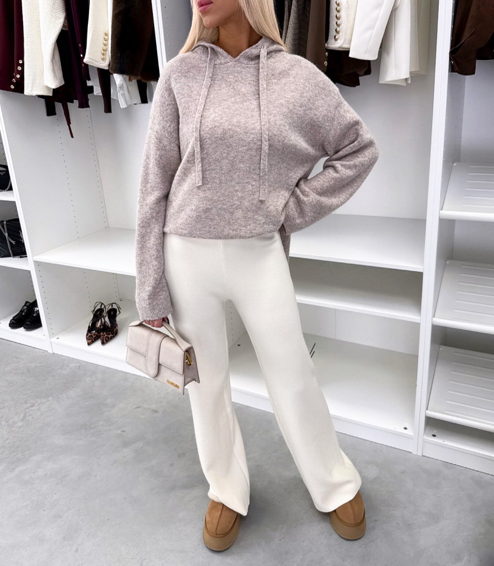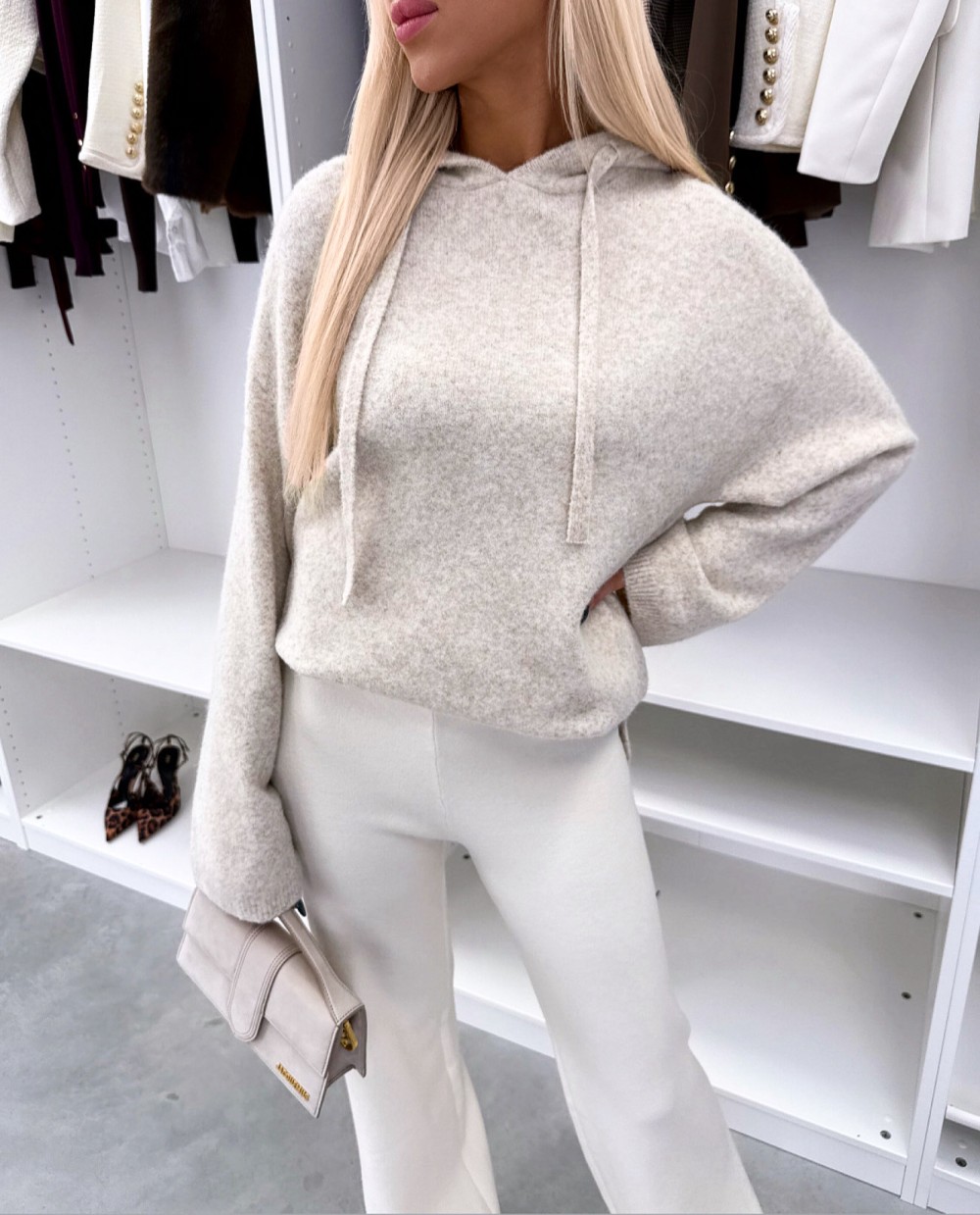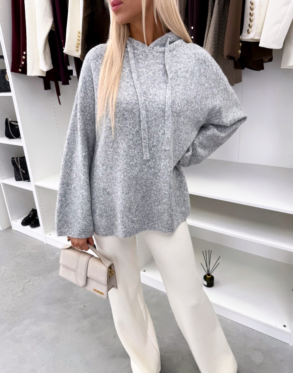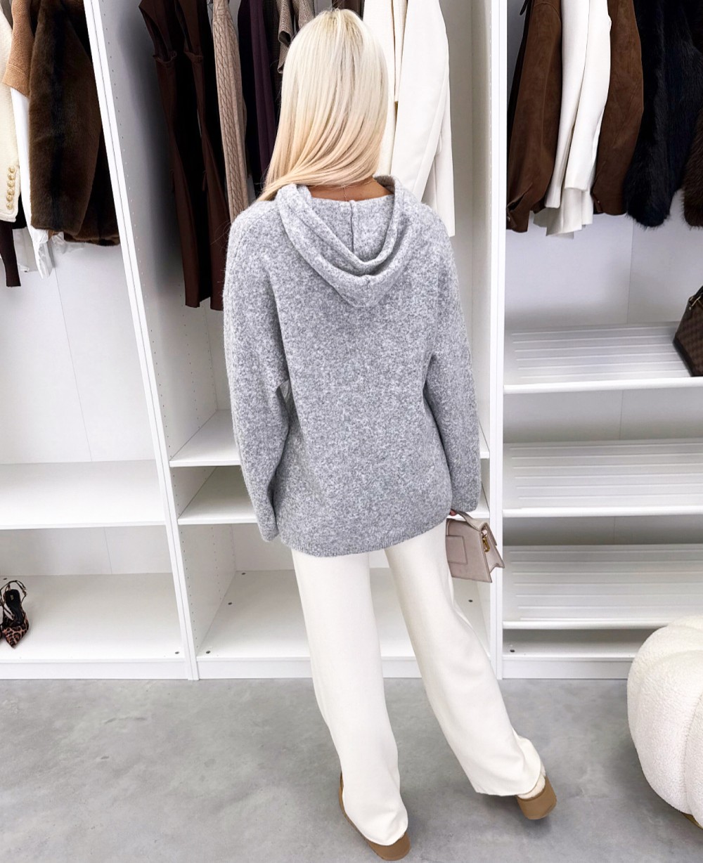 Мягкий свитер в стиле худи (Один размер, Серый)