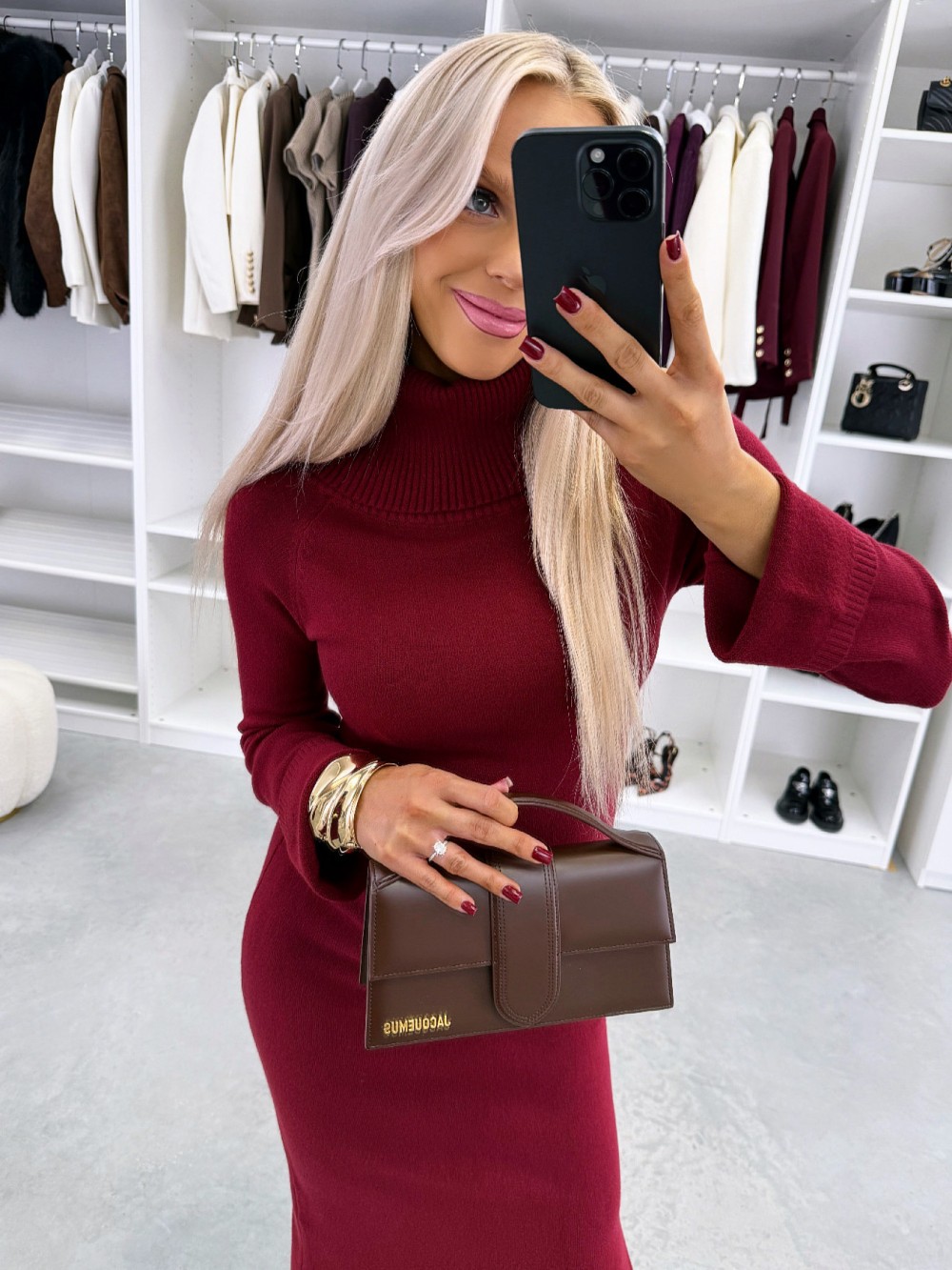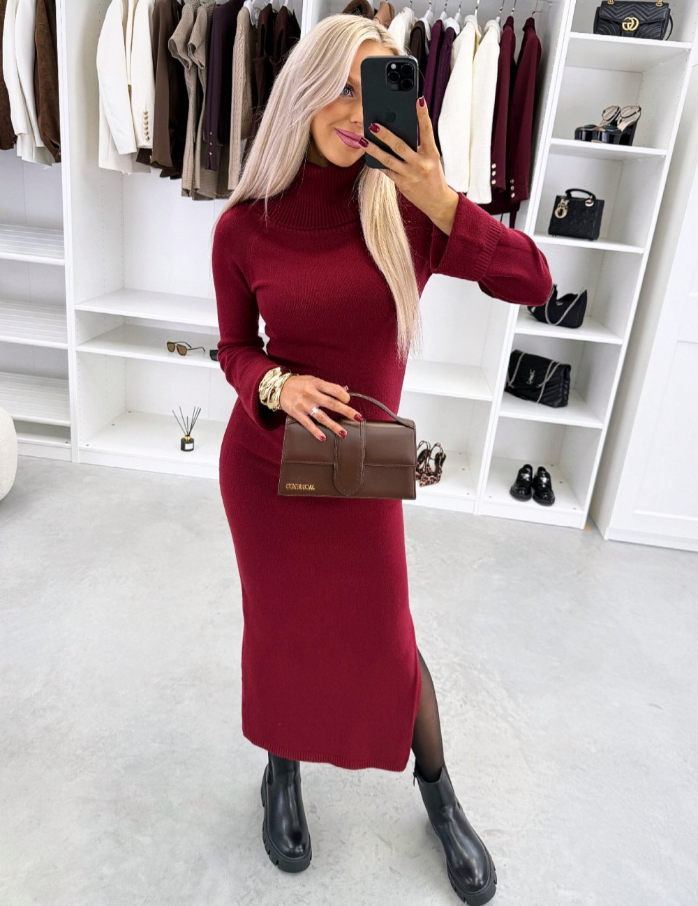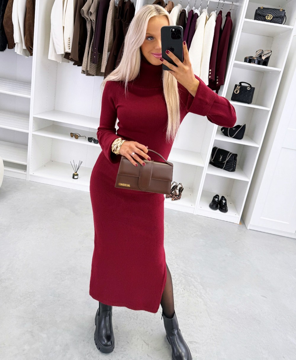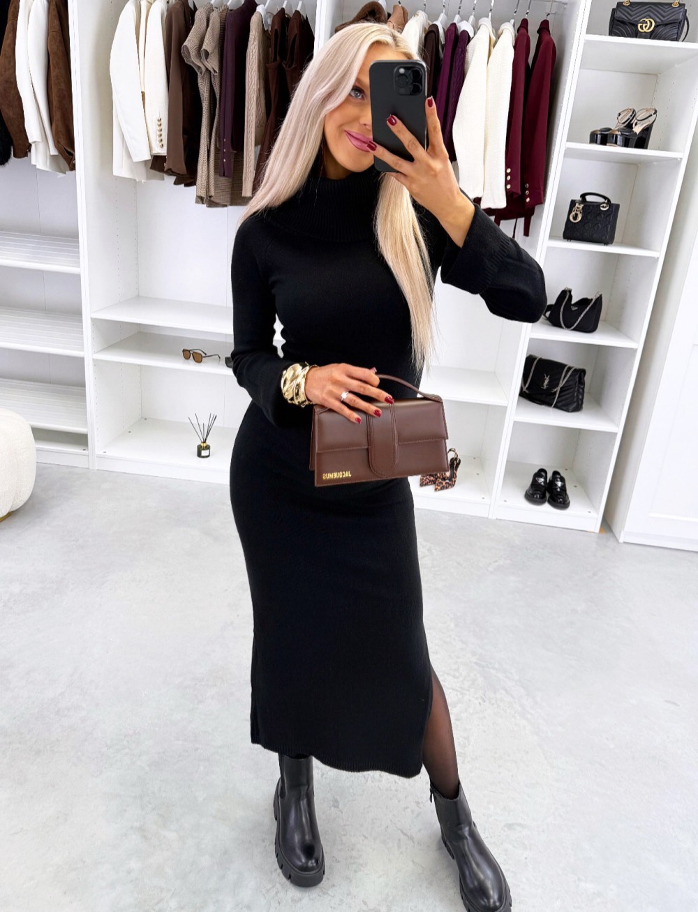 Платье-свитер с высоким воротом и разрезом сбоку (Один размер, Черный)