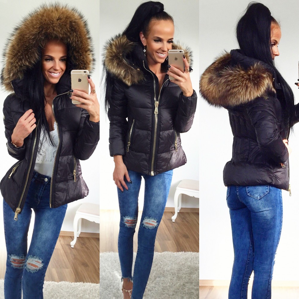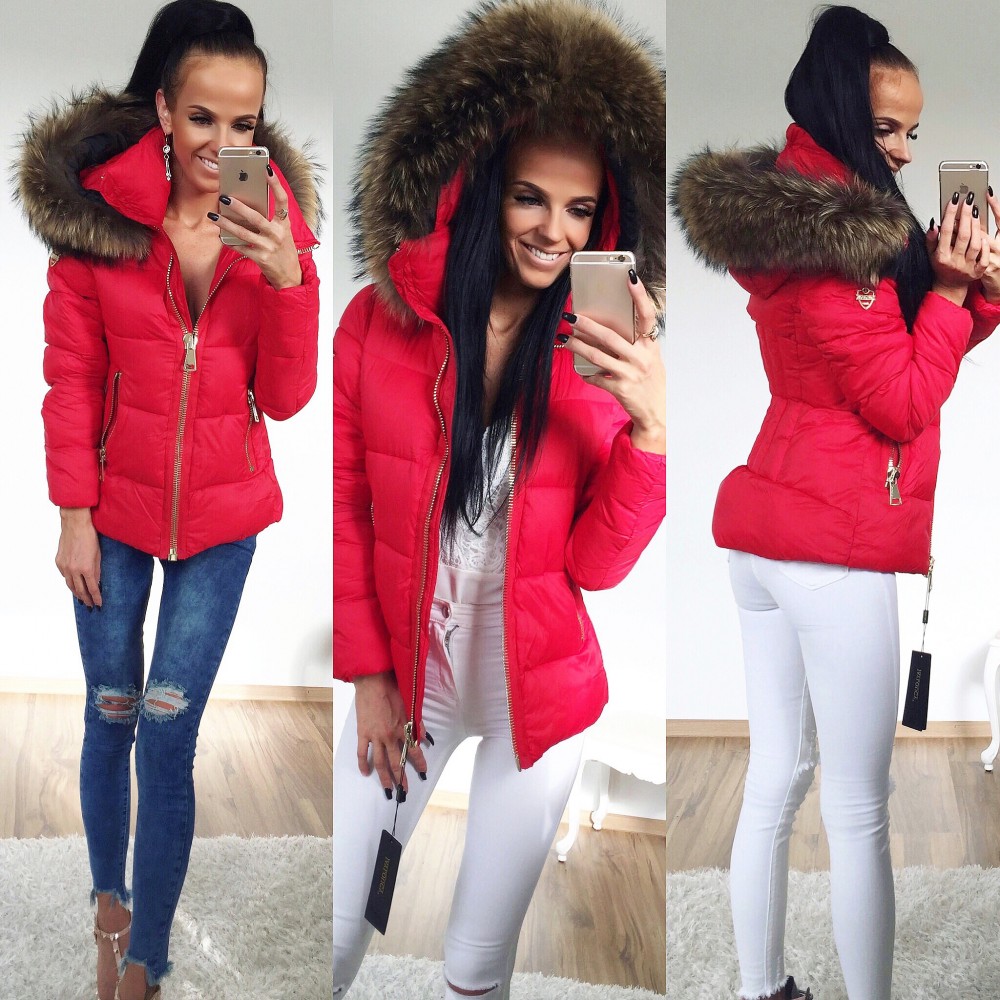 Теплая куртка с крупным натуральным мехом (Красный, XL)