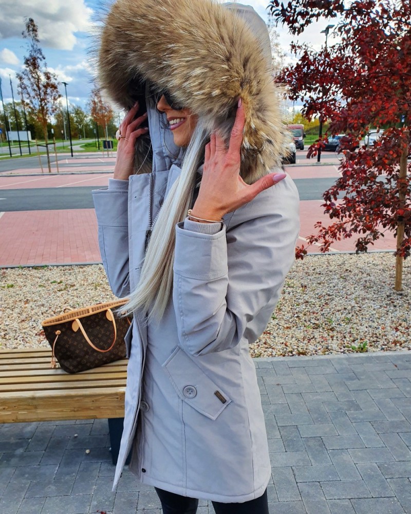 Водонепроницаемая зимняя куртка с натуральным мехом (XS, Темно-серый)